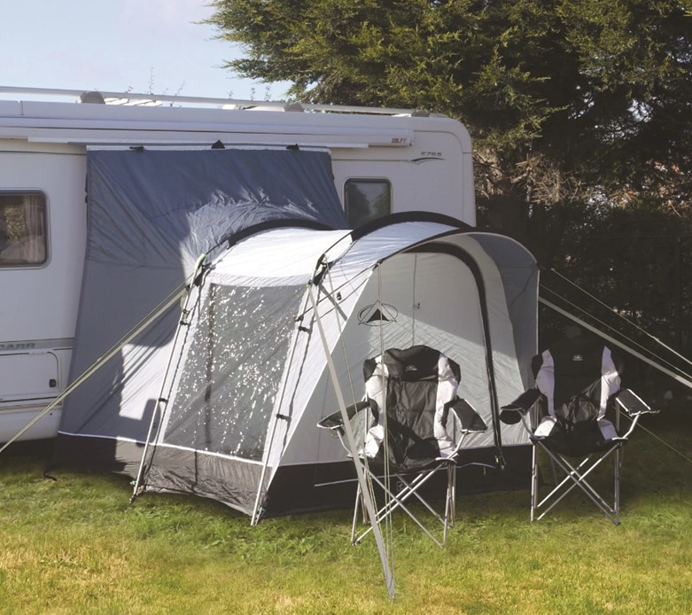 The Eyebrow Porch provides sheltered access into the awning and prevents rain running in when the extra wide roll back front door is unzipped.